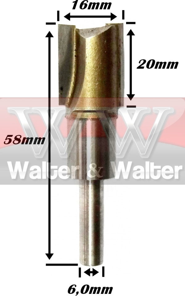 Fresa Reta Ø16mm X 20mm Corte X 58mm Total X 6,0mm Haste. (Ftr76)
