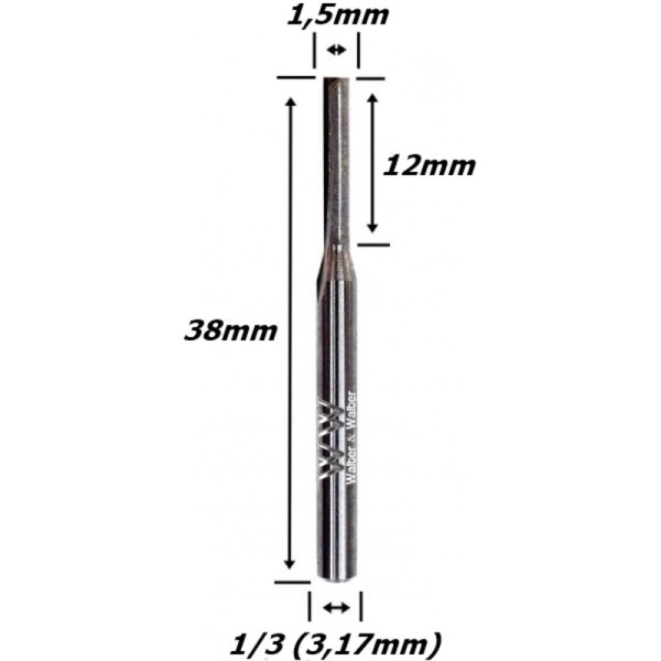 FRESA RETA 1,5MM (2 CORTES) X 12MM ÁREA DE CORTE X 38MM TOTAL X 3.175 MM HASTE