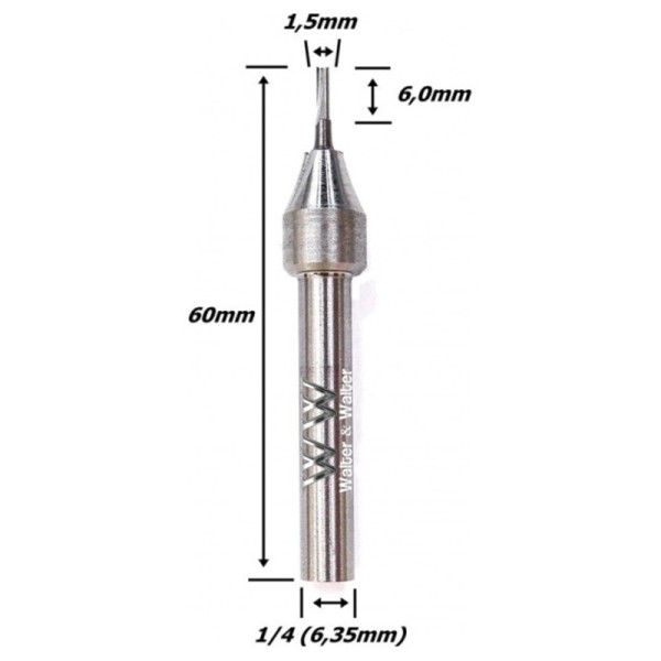 Fresa Reta Paralela 1,5mm (2c) X 6,0mm De Corte X 60mm Total X 1/4 (6,35mm) Haste. (Ftr0097)
