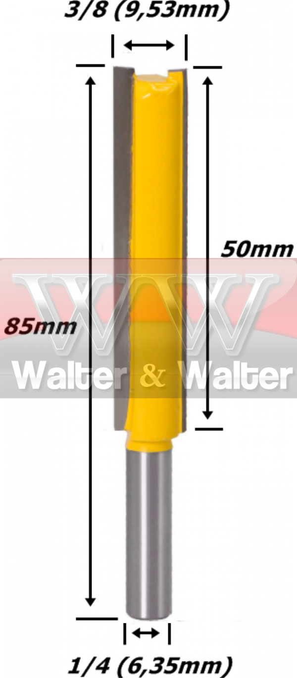 Fresa Reta Paralela 9,53mm (3/8) (2c) X 50mm X 85mm Total X 6,35mm Haste. (Ftr238)