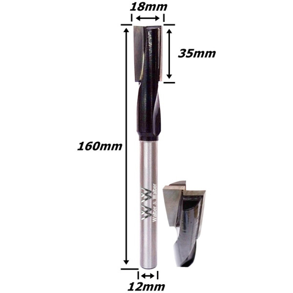 Produto: Fresa Reta Paralela Ø18mm (2c) X 35mm Corte X 160mm Total X 12mm Haste. (Ftr3486)