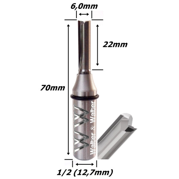 Produto: Fresa Reta Paralela TCT 6,0mm (2c) X 22mm Corte X 70mm Total X 12,7mm Haste. (Ftr2795)