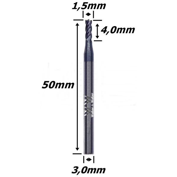 Produto: Fresa Topo Reto 1,5mm (Hrc45) (4c) X 4,0mm X 50mm X 3,0mm. (Ftr1949)