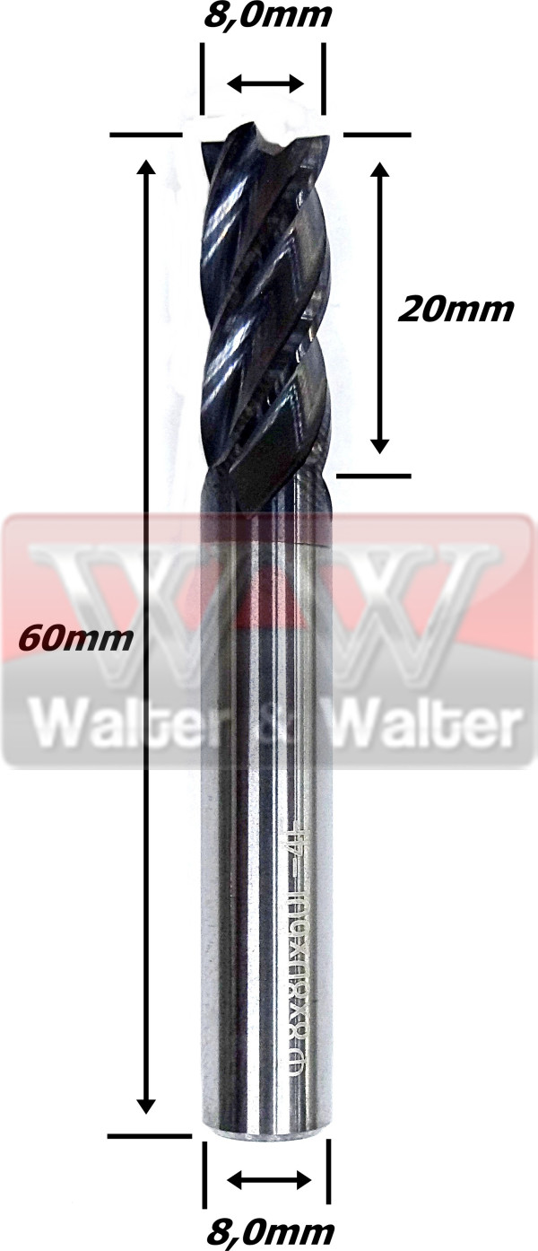 Produto: Fresa Topo Reto 8,0mm (Hrc45) (4c) X 20mm X60mm X 8,0mm. (Ftr40)