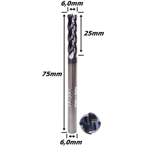 Fresa Toroidal Md (Hrc45) (4C) 6,0mm X 0,5mm Raio X 25mm X 75mm X 6,0mm. (Ftr3382)