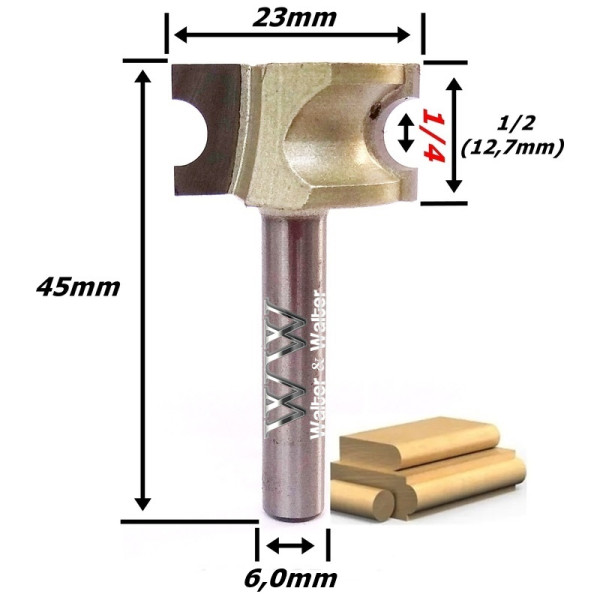 Produto: Fresa Arredondar Bastão Ø23mm X 6,35mm (1/4) X 6,0mm Haste. (Ftr733)