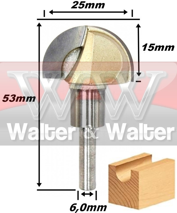 Produto: Fresa Meia Cana Ø25mm (12,5mm Raio) X 15mm De Profundidade X 6,0mm De Haste. (Ftr1943)