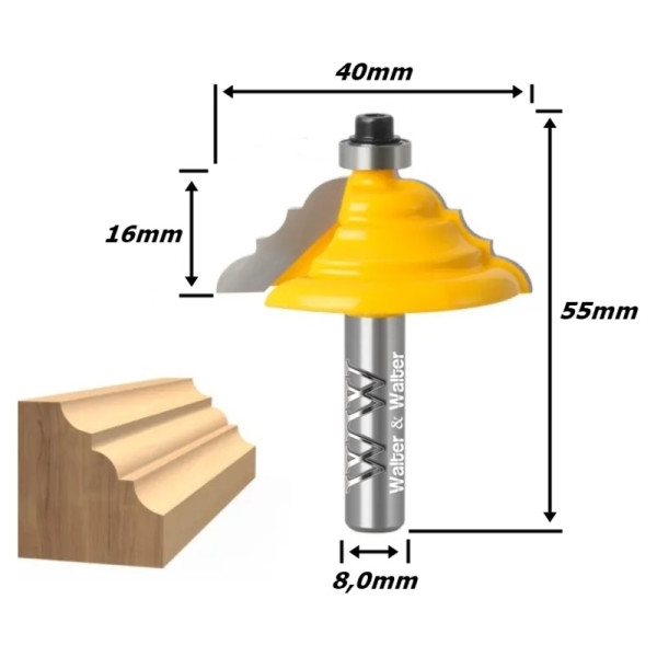 Fresa Modelagem Ø40mm X 16mm X 55mm X 8,0mm Haste. (Ftr2749)
