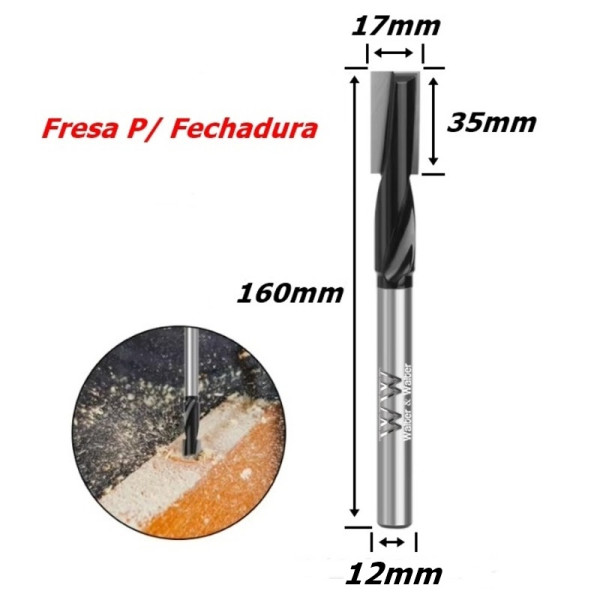 FRESA RETA PARALELA PARA FECHADURA 17MM X 35MM ÁREA DE CORTE X 160MM TOTAL X 12mm HASTE .