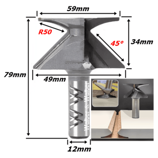 Fresa P/ Dobra De Mdf Ø59mm X R50mm X (45°) X 12mm Haste. (Ftr2886)