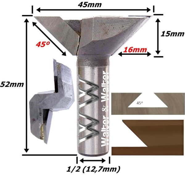 Fresa V Bit Ø22mm (22,5º) X 28mm Corte X 12mm Haste. (Ftr1544)