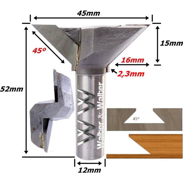 Fresa V Bit Ø63mm (120°) X 20mm Corte X 50mm Total X 12mm Haste. (Ftr0731)