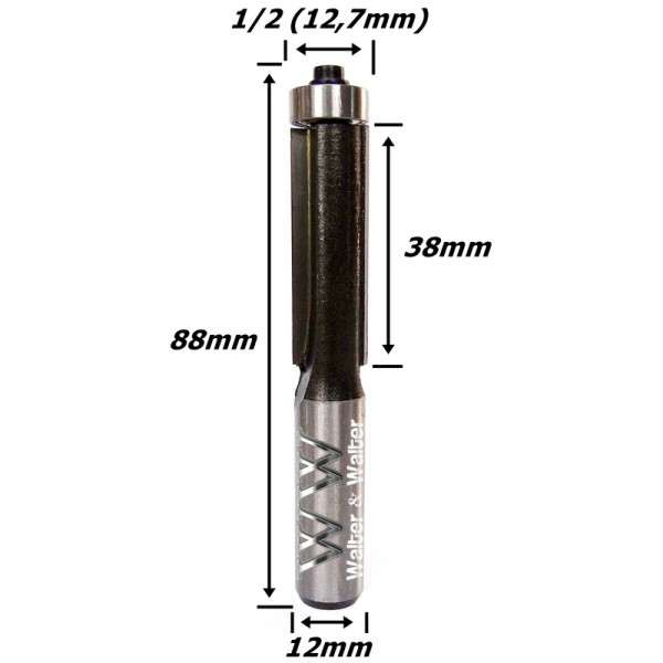 Produto: Fresa Reta C/ Rolamento Inferior Ø12,7mm (1/2") X 38mm Corte X 88mm X 12mm Haste. (FTR3338)