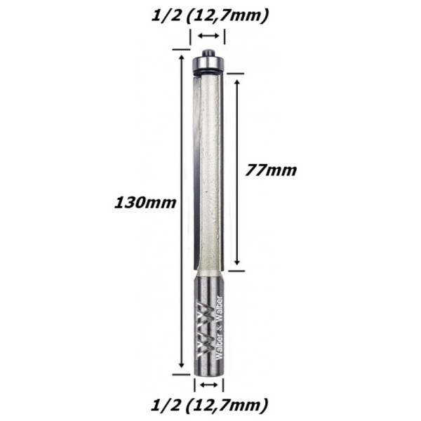 Fresa Reta C/ Rolamento Inferior Ø12,7mm (1/2") X 77mm Corte X 130mm X 12,7mm Haste. (Ftr2897)