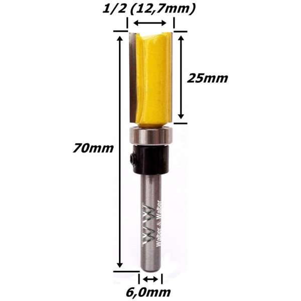 Produto: Fresa Reta C/ Rolamento Superior Ø12,7mm (1/2) X 25mm Corte X 70mm X 6,0mm Haste. (Ftr3503)
