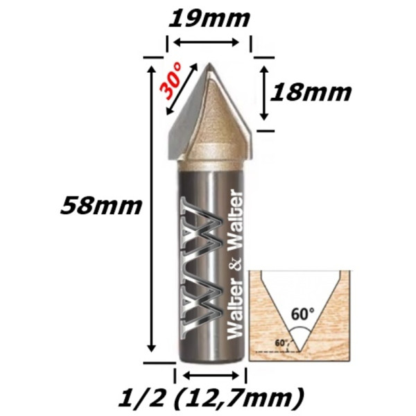 Produto: Fresa V Bit Ø19mm (60º) X 18mm Corte X 12,7mm (1/2) Haste. (Ftr2742)