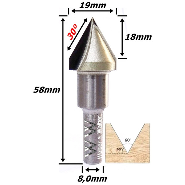 Fresa V Bit Ø19mm (60º) X 18mm Corte X 8,0mm Haste. (Ftr1135)