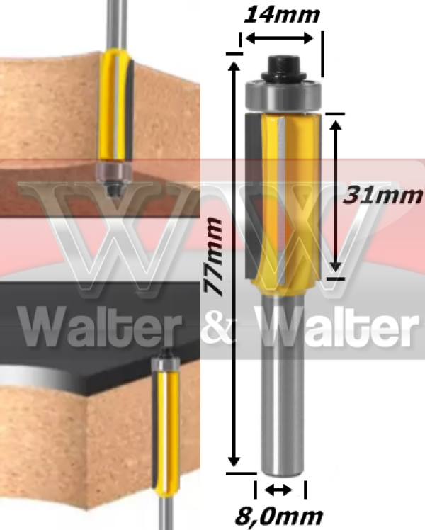 Produto: Fresa Reta C/ Rolamento Inferior Ø14mm (4c) 31mm Corte X 77mm X 8,0mm Haste. (Ftr0413)
