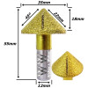 A fresa V-Bit diamantada de 35 mm é uma ferramenta de desbaste e acabamento utilizada principalmente em porcelanato, granito, mármore, quartzo e outras pedras duras. Seu formato em cone de 45° permite realizar cortes chanfrados, rebaixos, detalhes decorativos, marcações e acabamento de bordas com precisão e alta resistência ao desgaste.