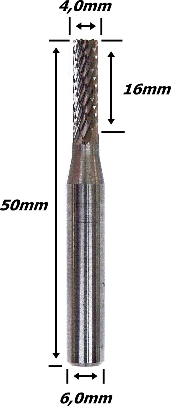 LIMA ROTATIVA (METAL DURO) CARBONETO DE TUNGSTÊNIO DIÂMETRO 4,0MM X 16MM ÁREA DE CORTE X 50MM TOTAL X 6,0MM HASTE. ALTA QUALIDADE. IDEAIS PARA: DESBASTE. PRÓPRIAS PARA: MADEIRA- ALUMÍNIO - ACRÍLICO - PLÁSTICO - BORRACHA - FERRO E OUTROS.