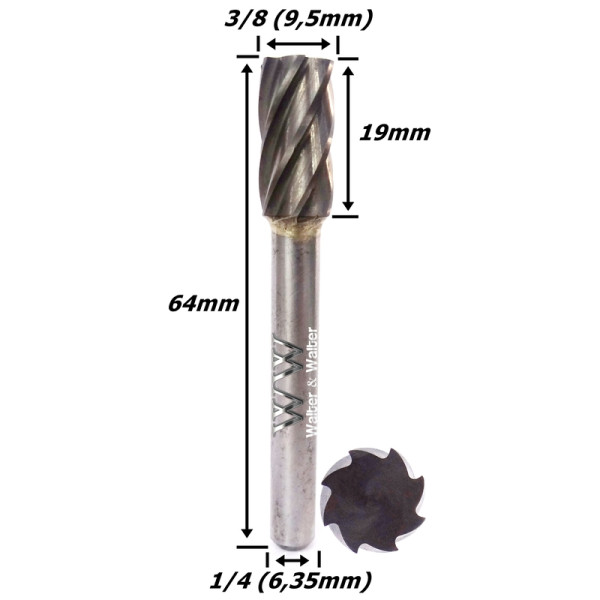 Produto: Lima Rotativa Reta 9,5mm (3/8) X 19mm Corte X 6,35mm (1/4) Haste. (Ftr1087)