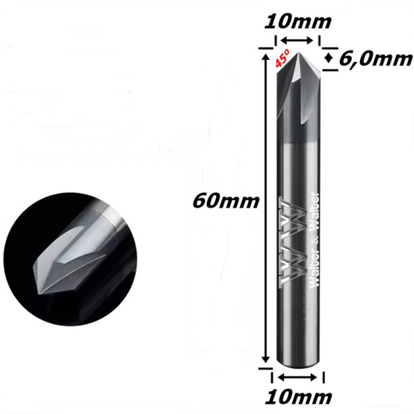 Produto: Escariador Metal Duro (90°) Ø10mm (Hrc45) X 6,0mm Corte X 60mm Total X 10mm Haste. (FTR3454)