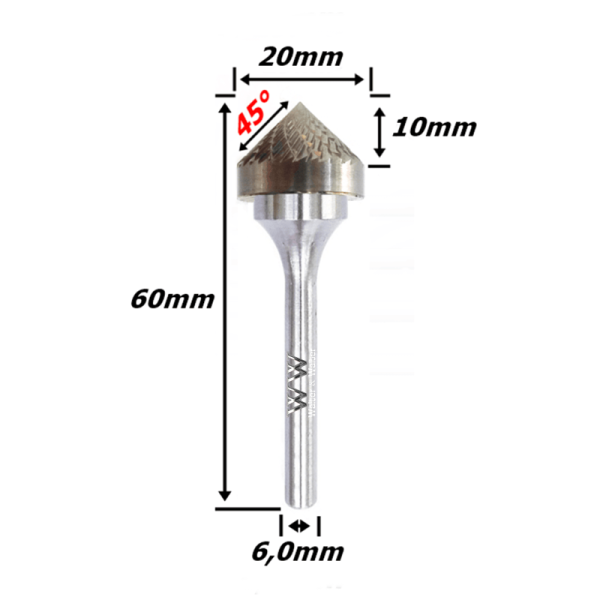 Produto: Escariador Metal Duro (90°) Ø20mm X 10mm Corte X 60mm Total X 6,0mm Haste. (FTR0954)