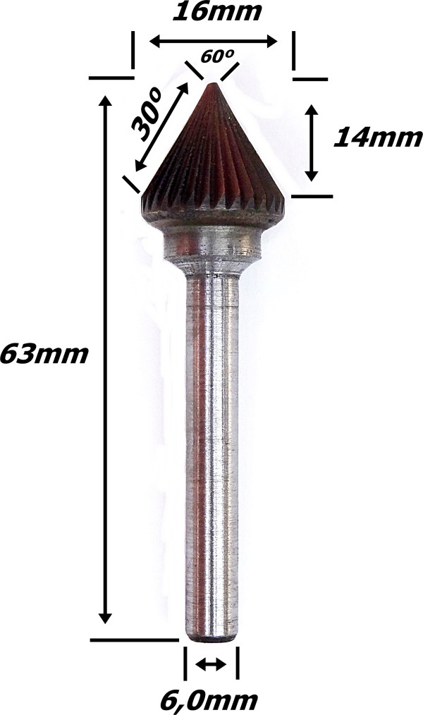 16MM (60 °) X 14MM ÁREA DE CORTE X 63MM COMPRIMENTO TOTAL X 6,0MM HASTE