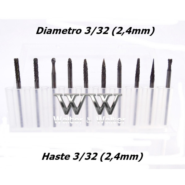 Kit Lima Rotativa Metal Duro 10 Un 3/32 (2,4mm) X 3/32 (2,4mm) Haste (Ftr3304)