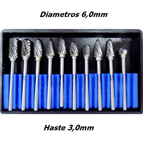 Kit Lima Rotativa Metal Duro 10 Un 6,0mm X 3,0mm Haste (Ftr3263)