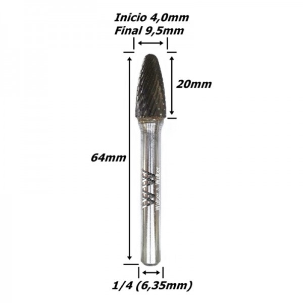 LIMA ROTATIVA (METAL DURO) CARBONETO DE TUNGSTÊNIO MODELO CÔNICA ÁRVORE.