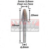 Produto: Lima Rotativa Árvore Ø12,7mm (1/2) X 25mm Corte x 70mm Total X 6,0mm Haste. (Ftr452)