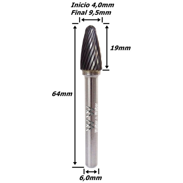 Produto: Lima Rotativa ÁRvore 9,5mm (3/8) X 19mm Corte X 64mm Total X 6,0mm Haste. (Ftr2963)