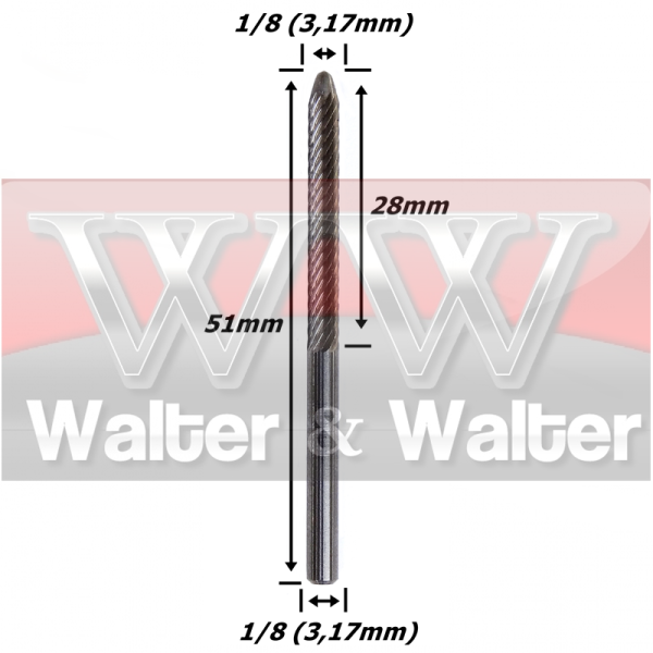 Lima Rotativa Cônica 1,2mm X 3,0mm Diâmetro X 9,5mm ÁRea De Corte X 64mm Total X 1/8 Haste. (Ftr0750)