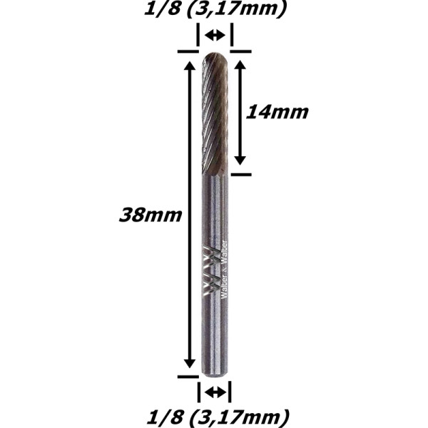 3,17MM (1/8) DIÂMETRO X 14MM ÁREA DE CORTE X 38MM TOTAL X 1/8 HASTE