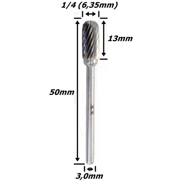6,35MM (1/4) DIÂMETRO X 13MM ÁREA DE CORTE X 50MM TOTAL X 3,0mm HASTE