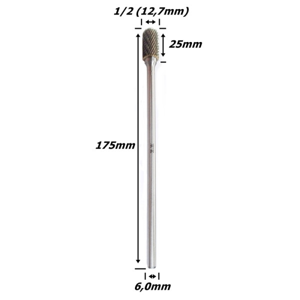 Lima Rotativa Cilíndrica Ball Ø12,7mm (1/2) X 25mm Corte X 175mm Comprimento X 6,0mm Haste. (Ftr0957)