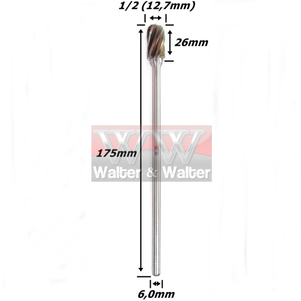 Lima Rotativa Cilíndrica Ball Ø12,7mm (1/2) X 26mm Corte X 175mm Comprimento X 6,0mm Haste. (FTR2483)