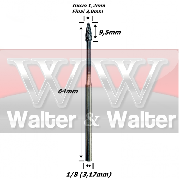 INICIO 1,2MM X FINAL 3,0MMDIÂMETRO X 9,5MM ÁREA DE CORTE X 64MM TOTAL X 1/8 HASTE