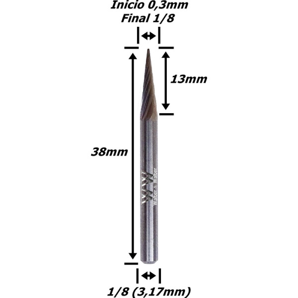 Produto: Lima Rotativa Cônica (Lisa) 0,3mm X 3,17mm (1/8) X 3,17mm (1/8) Haste. (Ftr0148)