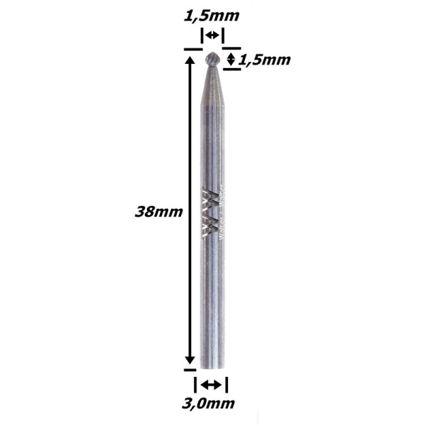 Lima Rotativa Esférica 1,5mm X 1,5mm X 38mm Total X 3,0mm Haste. (Ftr0760)