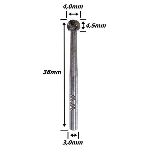 Lima Rotativa Esférica 4,0mm X 4,5mm Corte X 38mm Total X 3,0mm Haste. (Ftr2510)