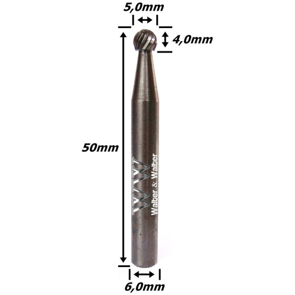 Produto: Lima Rotativa Esférica 5,0mm X 4,0mm Corte X 50mm Total X 6,0mm Haste. (FTR3282)