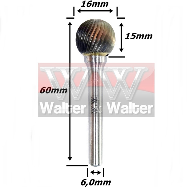 Lima Rotativa Esférica Ø16mm X 15mm Corte X 60mm Total X 6,0mm Haste. (Ftr456)