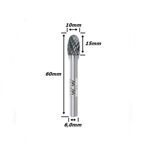 Lima Rotativa Oval Ø10 X 15mm Corte X 6,0mm Haste. (FTR3464)