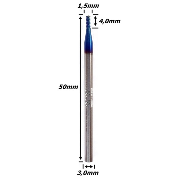 Fresa 1,5mm (Hrc65) (4c) X 4,0mm X 50mm X 3,0mm. (Ftr2772)