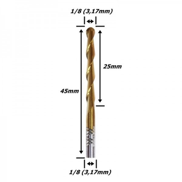 FRESA TOPO ESFÉRICA 3,17MM (1/8) (2 CORTES) X 25MM ÁREA DE CORTE X 45MM TOTAL X 3,17MM (1/8) HASTE.