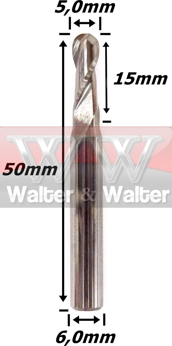 Fresa Topo Esférica 5,0mm (2c) X 15mm X 50mm X 6,0mm. (Ftr8100)
