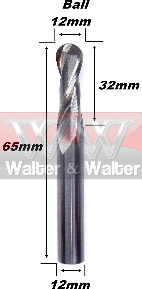 Fresa Topo Esférica Ø12mm (2c) X 32mm X 65mm X 12mm. (Ftr0653)