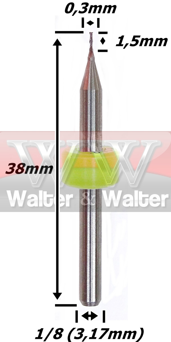 Fresa Helicoidal 0,3mm (2c) X 1,5mm X 38mm X 3,17mm (1/8). (Ftr23)